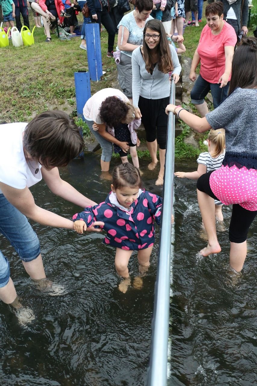 Bei reichlich reißender Strömung begrüßten heute zwei Kindergärten und der Kneipp-Verein die schöne Jahreszeit. Groß und Klein wateten tapfer durch die frischen Fluten - für den Spaß und die Gesundheit. Und auch dem eigentlichen Ziel kam man wieder ein Stück näher...