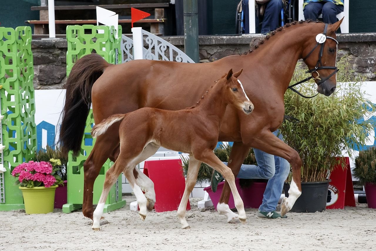 Für insgesamt 270.600 Euro wurden am Abend im stimmungsvoll erleuchteten Stadion 16 excellente Stut- und Hengstfohlen verauktioniert. Preisspitze war ein Hengstfohlen namens Traum II aus der Zucht von Jörn Kusel (Visselhövede). Der am 1. Mai geborene kleine Fuchshengst von Tangelo van de Zuuthoeve aus einer Calido-Mutter machte Träume seines Züchters wahr, als Auktionator Thomas Münch bei 31.500 Euro den Zuschlag erteilte.