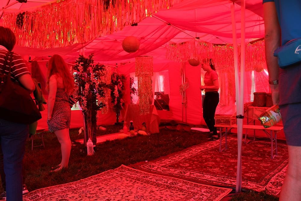 Das Thema des heutigen Kinderfestes war Tausendundeine Nacht. Schon das Zelt strahlte beim Betreten einen märchenhaften Flair aus.
