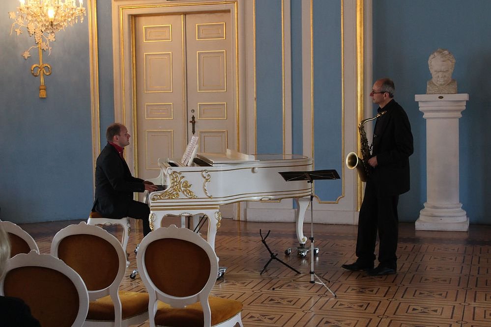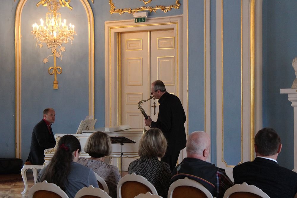 Die musikalische Begleitung übernahmen Andreas Groß (Piano) und Bernhard Wundrak (Saxophon).