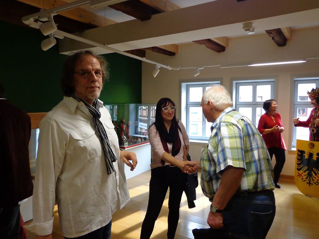 Schließlich ergriff Peter Kuhlbrodt, der auch als Kurator agiert, das Wort und nahm die überschaubare Gästeschar mit auf eine Reise in die Geschichte des Nordhäuser Rolands und machte auf so manche interessante Entdeckung bei seiner intensiven Forschungsarbeit aufmerksam.