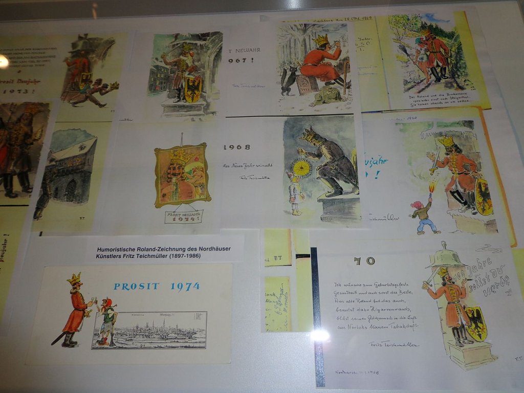 Was dabei herauskam, ist nun bis zum 30. Juli 2017 im Museum in der Nordhäuser Altstadt zu sehen. Neben Schrifttafeln bereichern zahlreiche Plakate, Bücher und Broschüren zum Nordhäuser Roland und zu seinem Fest die Schau. Zu sehen sind außerdem eine ganze Reihe bildlicher und figürlicher Darstellungen des Roland, darunter auch humorige Zeichnungen des Nordhäuser Künstlers Fritz Teichmüller.