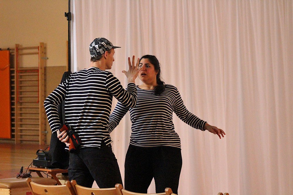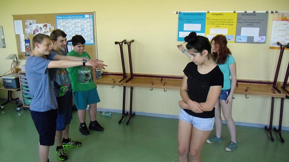 Drei Schauspieler aus Berlin nahmen die Schülerinnen und Schüler der staatlichen Gemeinschaftsschule Oldisleben am 17.05.2017 mit auf eine Reise, bei der von den Profis eine ganze Schulklasse und das Gruppenphänomen Mobbing auf die Bühne gebracht wurde.