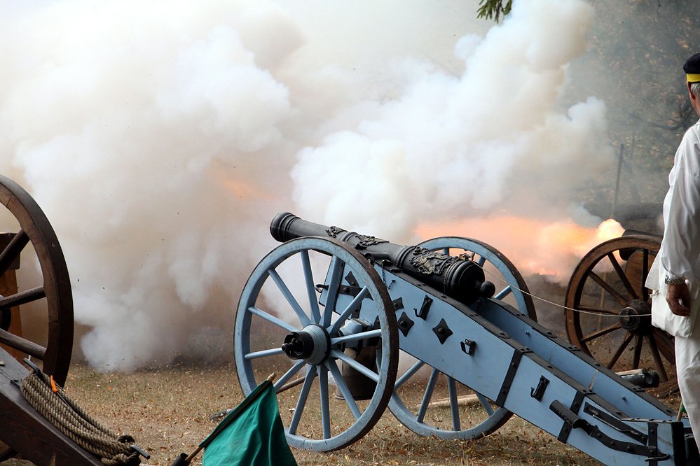 Geschützdonner auf einem Truppenübungsplatz der Bundeswehr ist nicht unbedingt erstaunlich. Wohl aber, wenn der Pulverdampf aus historischen Geschützen aufsteigt und es auf dem Übungsplatz aussieht wie in einer Szene eines Historienfilms, weil die Kanoniere in historischen Uniformen stecken und mit Ladestöcken die Ladungen in die Kanonen rammen, um dann Kugeln auf eine etwa ein mal ein Meter große Scheiben abzufeuern.