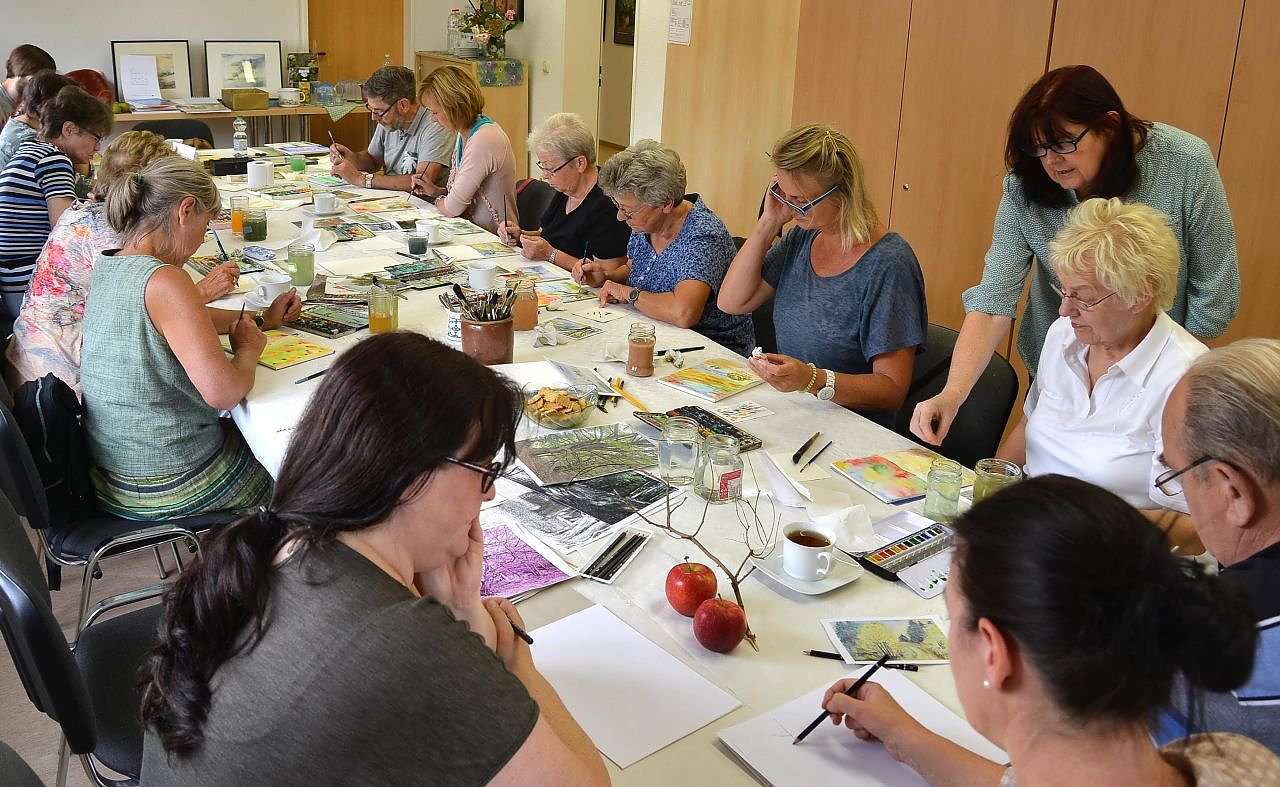 Aufgrund der hohen Nachfrage findet nun zum siebten Mal ein Malkurs unter der fachlichen Anleitung durch Karina Alig statt. Jeder Teilnehmer hat Gelegenheit, ein eigenes kleines Kunstwerk als Aquarell oder Zeichnung zu schaffen. Der Kurs ist für Anfänger oder Fortgeschrittene gleichermaßen geeignet. Das notwendige Material wird in vollem Umfang zur Verfügung gestellt. Frau Alig steht jederzeit mit Rat und Tat zur Seite.