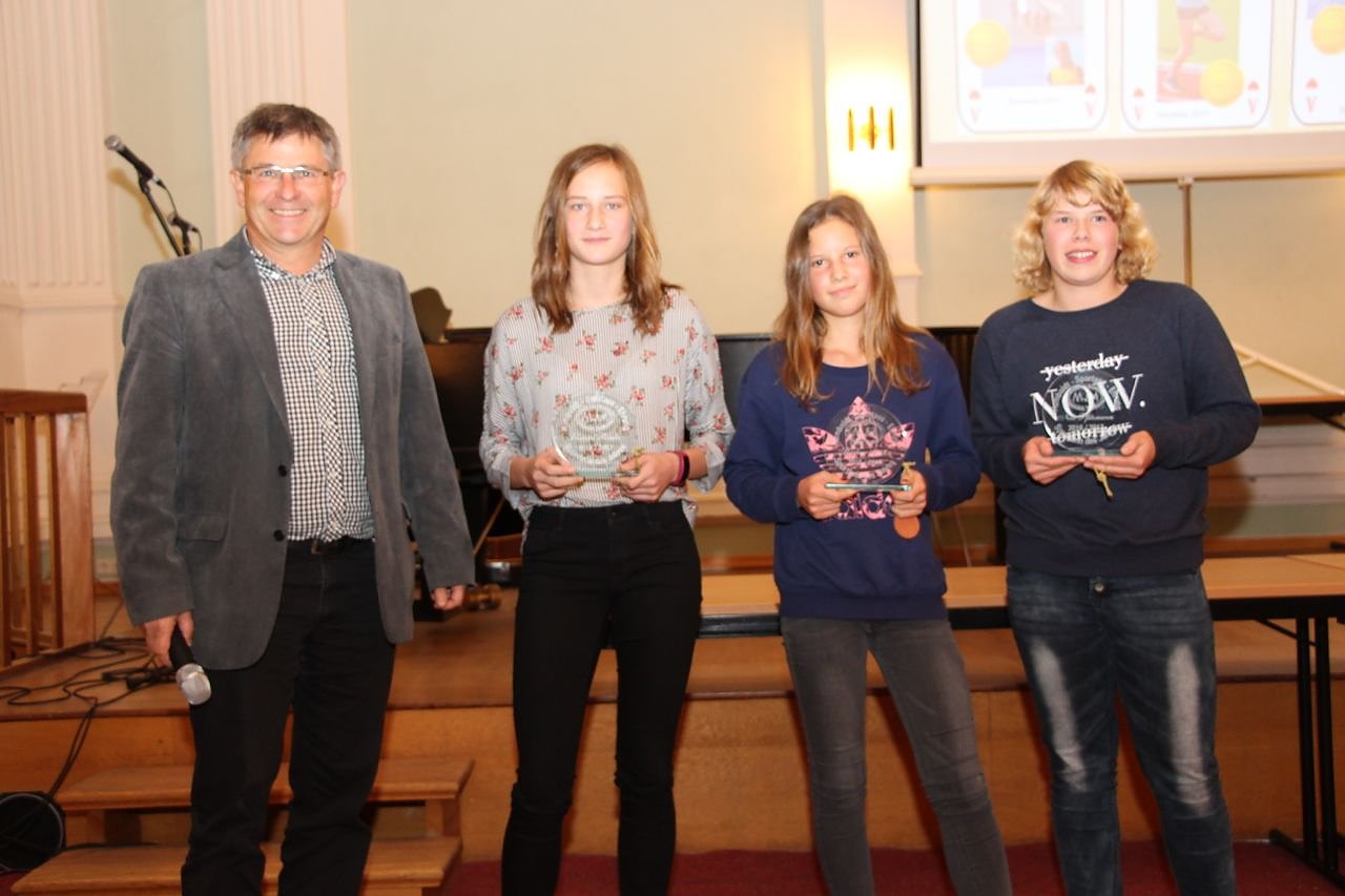Doch dann ging es an die Ehrungen, wieder umrahmt von musikalischen und sportakrobatischen Darbietungen. Als Durchstarter bei den Schulneulingen waren Frederike Thomschke und Florian Happ, die sich vor allem in der Leichtathletik hervorgetan hatten, als erste an der Reihe. Als Sportlerinnen des Schuljahres 2016/17 wurden Marlene Linder, Chantal Rimke und Nele Pfitzmann (alle Klasse 7) geehrt. Bei den Sportlern des Jahres fiel die Wahl diesmal auf Lukas Giesler, Pierre-Leon Polte (Beide Klasse 9) und Vincent Danner (Klasse 10).