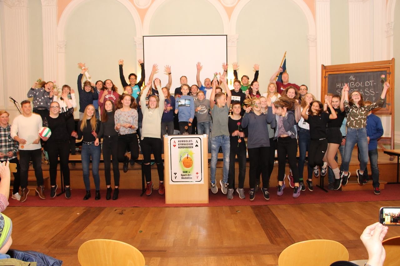 Am Mittwoch war es wiedermal so weit. Das Nordhäuser Humboldt-Gymnasium ehrte seine besten Sportlerinnen und Sportler des zu Ende gehenden Jahres mit den begehrten SAMs, den Sportass-Medaillons. Es war die nunmehr bereits 16. Humboldt-Sportass-Ehrung...