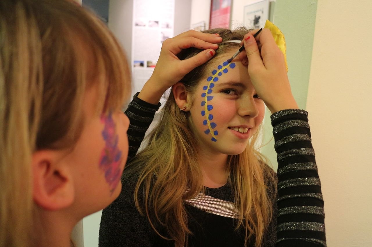 Was gehört unbedingt zum Theater? Kostüme natürlich. Eine ganze Reihe verschiedenster Verkleidungen und Hüte konnten die jungen Besucher des Museums gestern ausprobieren und kombinieren. Wer wollte konnte sich auch seine eigene "Zaubermaske" basteln und verzieren.