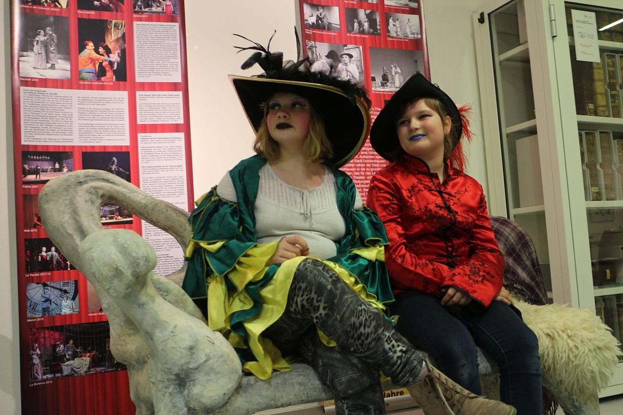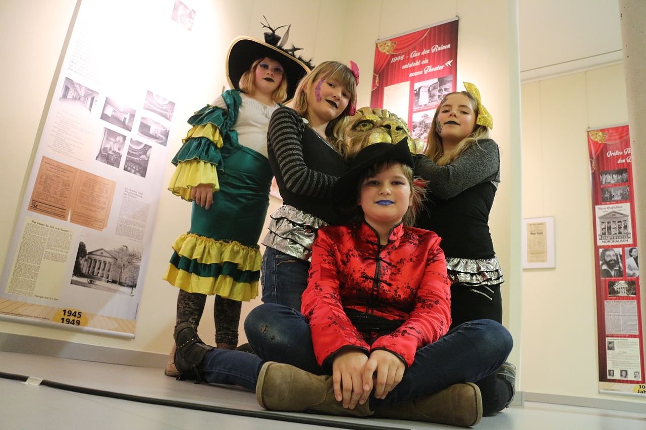 Kostüme und Kopfbedeckungen steuerten freundlicherweise der Kostümverleih Spuk und der junge Zirkus Zappelini bei, für die passende Atmosphäre sorgt die aktuelle Sonderausstellung zur Geschichte des Theaters, reich bebildert und mit einigen schönen Exponaten aus 100 Jahren Nordhäuser Bühne.