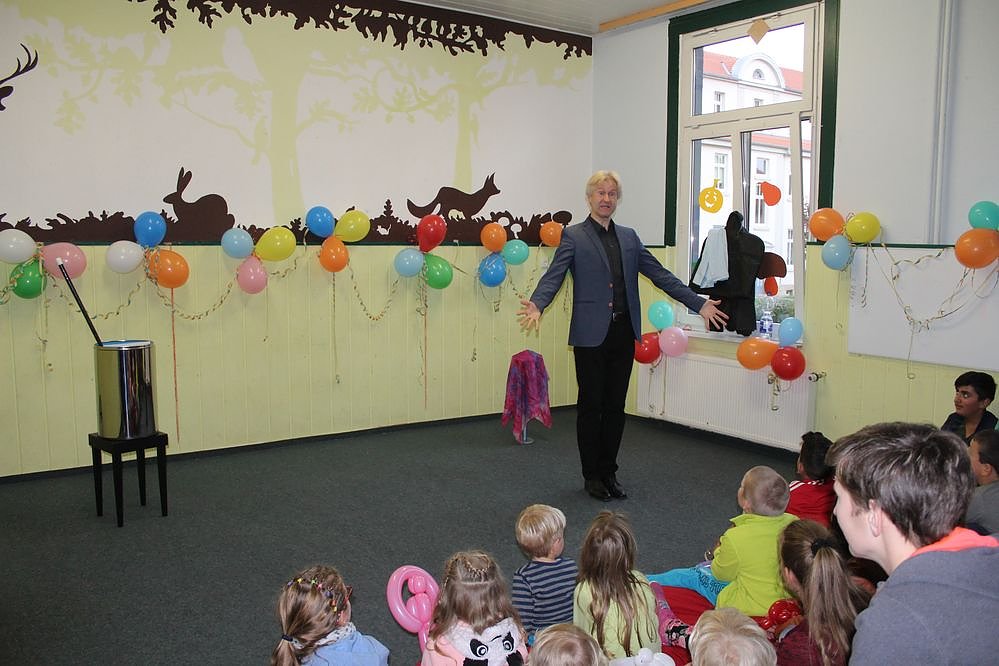 Besonderes Highlight war der Auftritt des Zauberers Steffen Borowski, der Zuschauer jeden Alters ins Staunen brachte. Landrätin Antje Hochwind, ebenfalls aus Besucherin dabei, machte Platz im Raum, um den weiteren Besuchern wenigstens noch einen Platz einräumen zu können, so groß war der Ansturm.