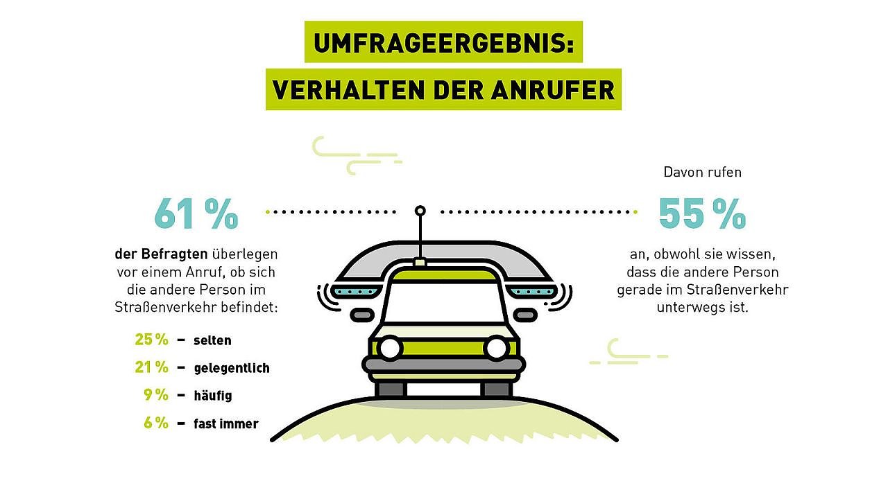 Mehr als ein Drittel (36 Prozent) aller befragten Handybesitzer erklärte, durch die Nutzung des Mobiltelefons im Straßenverkehr schon einmal in eine gefährliche Situation geraten zu sein; sieben Prozent hatten deshalb bereits einen Unfall. Von den bereits in eine gefährliche Situation verwickelten Fahrrad- oder E-Bike-/Pedelec-Fahrern haben 27 Prozent* einer anderen Person die Vorfahrt genommen und 22 Prozent* zu spät reagiert. Weitere 22 Prozent* sind fast von ihrem Weg abgekommen. Diejenigen Fußgänger, die – abgelenkt durch ihr Mobiltelefon – bereits in eine gefährliche Situation gerieten, reagierten zu spät (34 Prozent*) oder übersahen einen anderen Verkehrsteilnehmer (34 Prozent*).