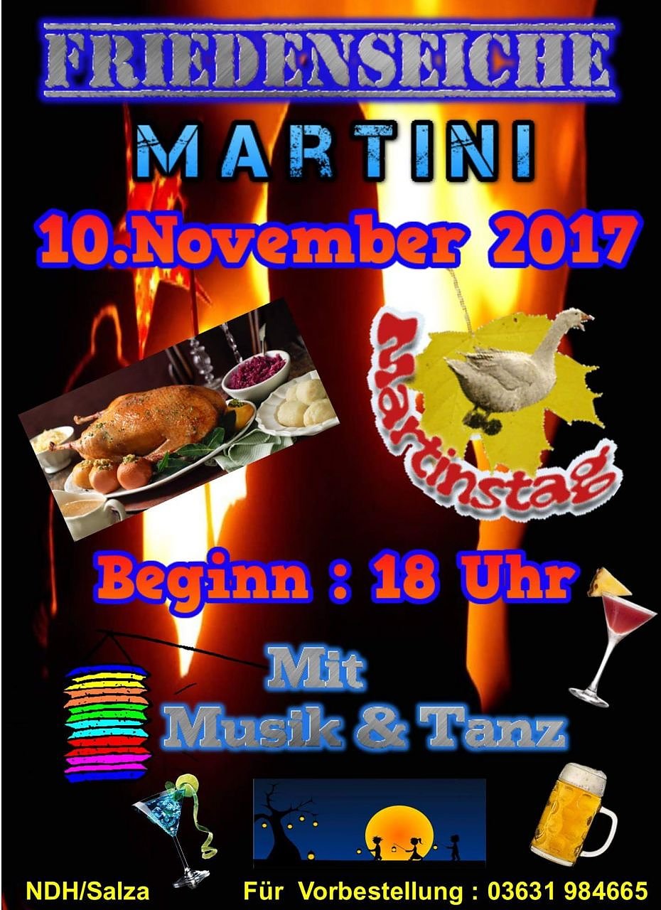 Ab 18:00 Uhr öffnen sich hier die Türen zum großen Martini-Essen. Ganz traditionell wird es leckeren Gänsebraten geben. Aber natürlich stehen auch andere Gerichte zur Auswahl. Musikalisch wird der Abend durch DJ Axel Seifert begleitet, so dass der Abend gemütlich bei Musik und Tanz ausklingen kann.