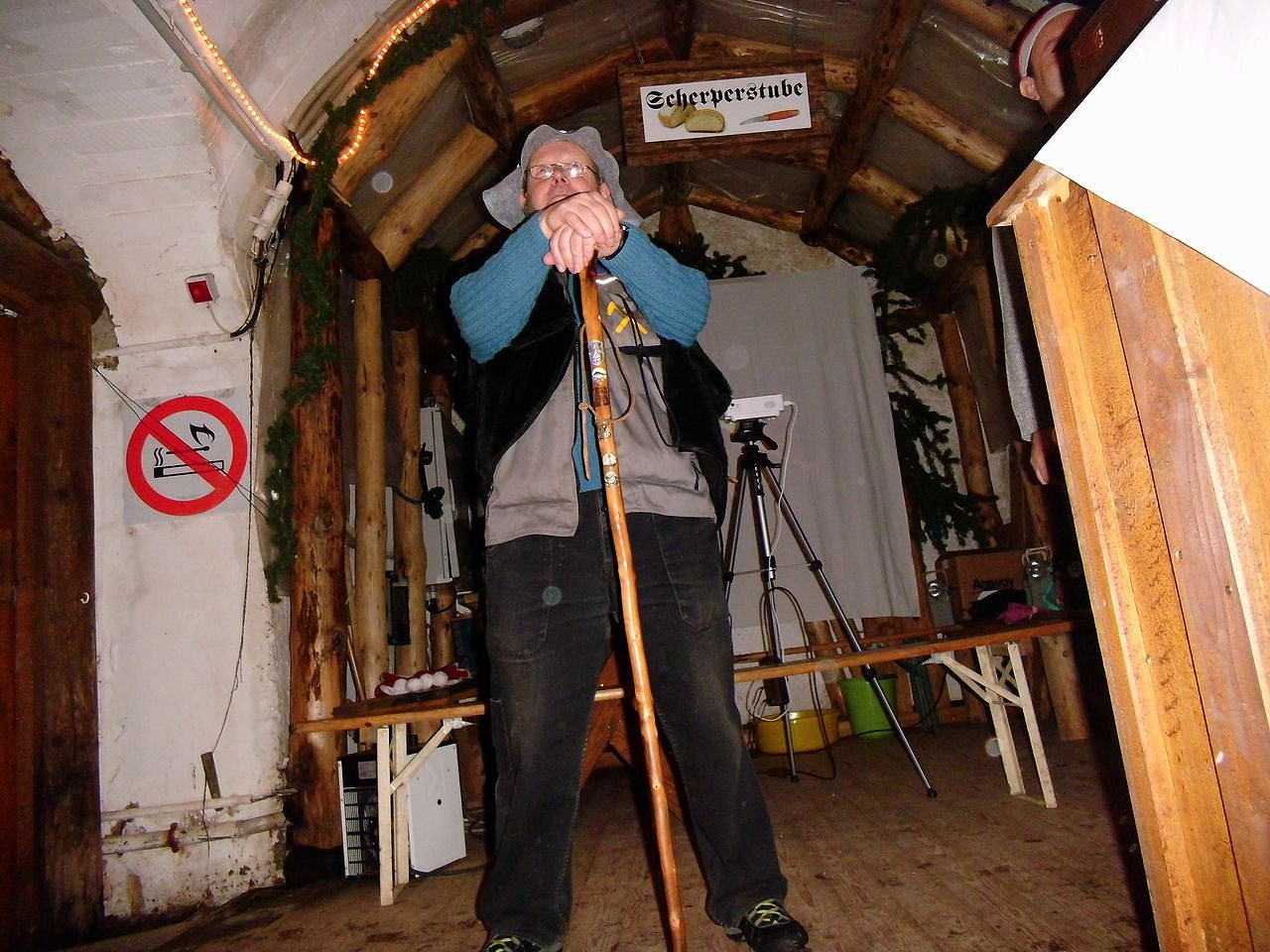 Spinnentopf und Hexenbein, die Hexe lockt die Kinder ins Bergwerk rein. Nun da gab es Knuspersachen, die die Finger dicker machen. Drinnen saß ein alter Mann, der gut Märchen erzählen kann. Ein Kobold der im Stollen schlief, kam grollend mit Gestank und Mief...