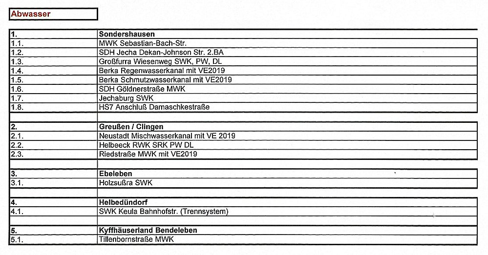Die folgenden Beschlüsse erfolgten jeweils bei einer Enthaltung. Die kam von Jörg Steinmetz als Vertreter des Helbedündorfes. Hier geht es um die nicht in den kommenden Plänen enthaltene Umbau der Kläranlage Keula. Aber man einigte sich, dass es im Januar Gespräche geben soll.