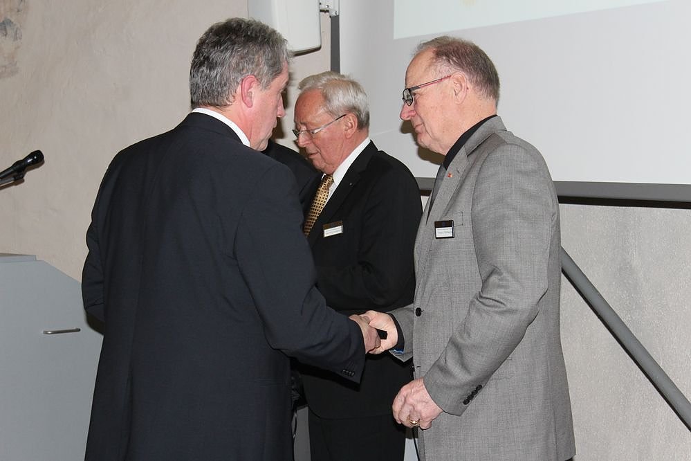 Zum Abschluss der Festveranstaltung gab es noch einen Höhepunkt, als die verdienten Mitglieder, Wolfgang Wytrieckus, Karl-Heinz Langhorst und Eckhard Wehmeier mit der Paul Harris Fellow Medaille ausgezeichnet wurden.