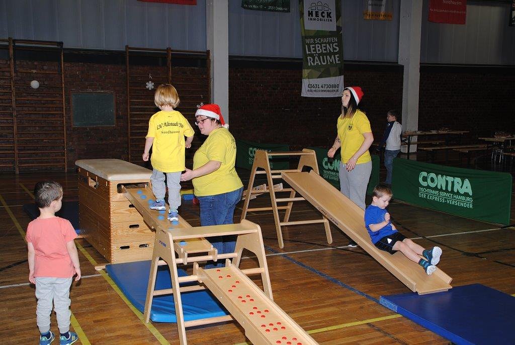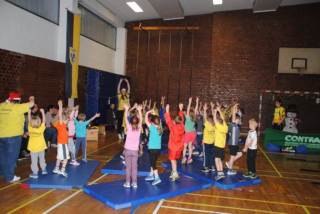Es war die Kindertanzgruppe des Vereins die gemeinsam mit ihrer Übungsleiterin Frau Jahne, den großen wie kleinen Gästen der Weihnachtsfeier ihren extra für diesen Tag einstudierten Tanz zeigen wollten und alle waren begeistert. Leider mußte der Weihnachtsmann wieder weiterziehen aber der Nachmittag bot unseren jüngsten Sportlerinnen und Sportler noch viele weitere schöne Überraschungen und Geschenke. Bei Musik, Pfannkuchen und Brezeln strahlten dann nicht nur die Kinderaugen, sondern auch Oma, Opa, Mama und Papa.