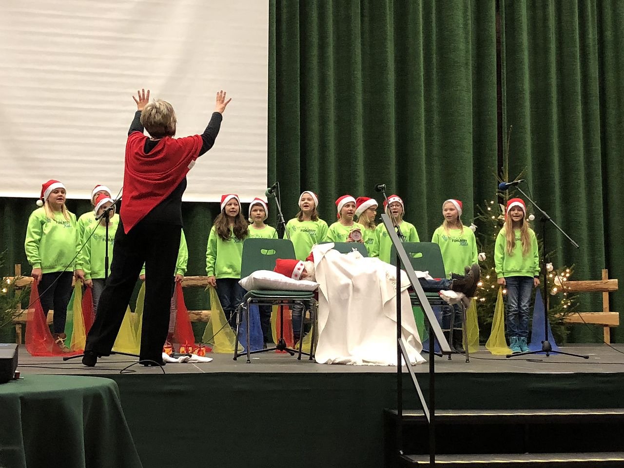 In der Obereichsfeldhalle Leinefelde haben die Kids der Fuhlrottschule den Weihnachtsmann wachgesungen. Foto: Natalie Hünger