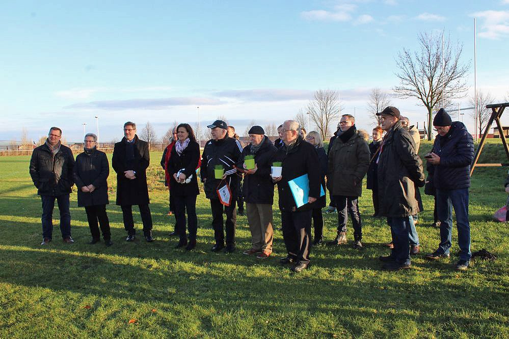 Landrätin Antje Hochwind (SPD), Thomas Röber der Vereinsvorsitzende, der Präsident des Thüringer Sportbundes Peter Gösel und Joachim Pötzschke, Bürgermeister von Oldisleben.