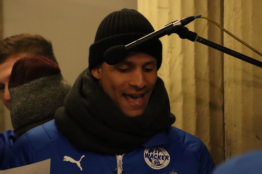 Kurz bevor sich die Jungs von Wacker Nordhausen in die Weihnachtszeit und die Winterpause verabschieden, wurde am Abend noch einmal gemeinsam gesungen. Das waren zwar weniger die Fangesänge, dafür mehr die Weihnachtslieder...
