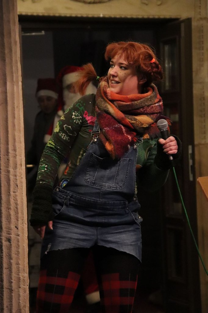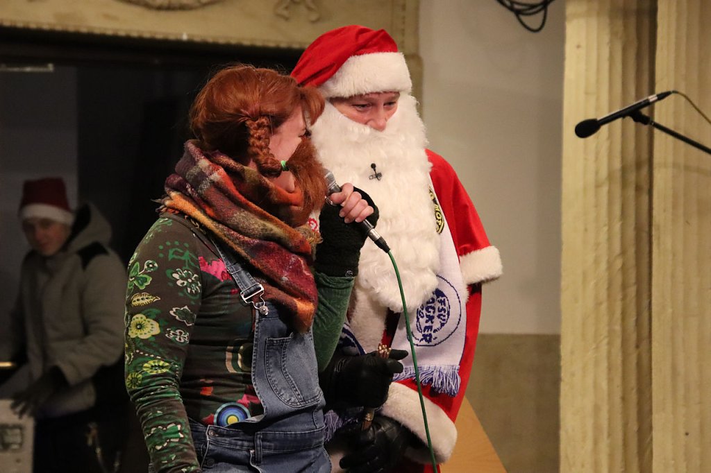 Traditionell nutzt der Nordhäuser Fußballsportverein die Vorweihnachtszeit, um gemeinsam mit vielen Kindern ein Fenster des Adventskalenders am Theater zu öffnen. Und Tradition hat dabei natürlich auch das gemeinsame Singen. Bernd Peter und Peter Blei haben diesen Kultauftritt begleitet.