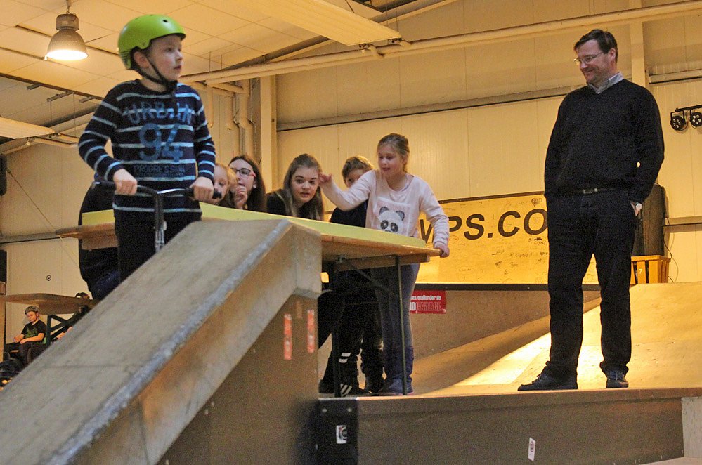 Viel Spaß hatte auch DJ MIKE HaPUNKT, wenn er nicht selbst für Stimmung mit Musik sorgte. Es war ein tolles Familienfest und selbst als kn wieder zur nächsten Veranstaltung unterwegs war, kamen immer noch Kinder und Jugendlich in die Skate-Arena.