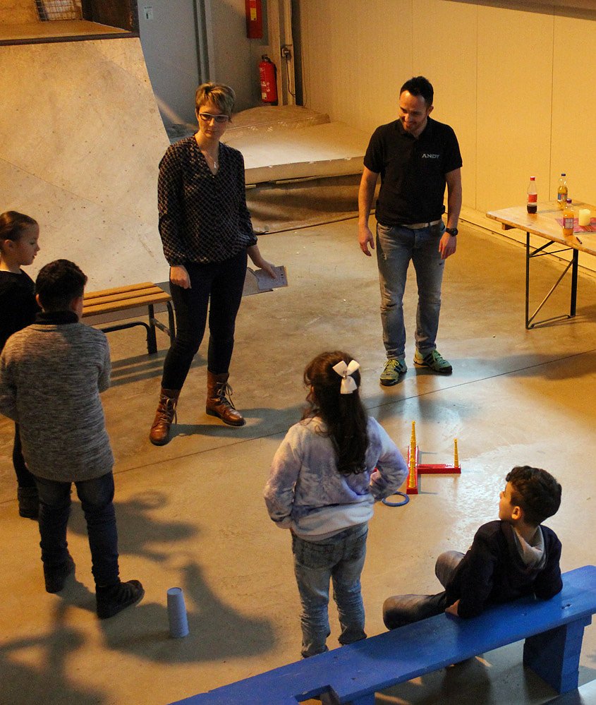 Entweder man nutze das "normale" Angebot der Skate-Arena oder man machte bei den organisierten Spielen mit. An sechs Stationen musste man mitmachen, um am Schluss in der Lostrommel für Preise zu sein.