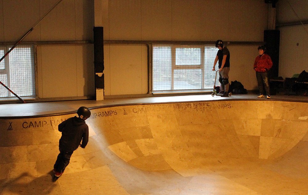 Auch heute war wieder viel los. Als kn gegen 15:00 Uhr in die Skate-Arena rein schaute, hatten sich schon rund 80 Kinder und Jugendliche eingefunden.
