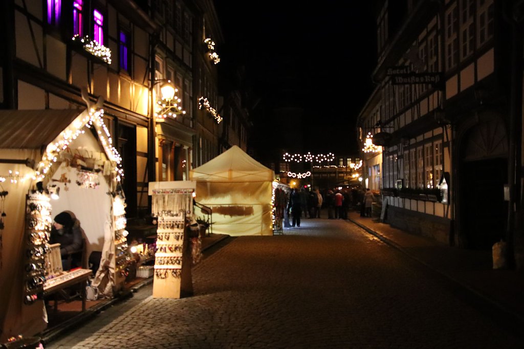 Die Atmosphäre in der kleinen Harzstadt ist natürlich einmalig. Der große Weihnachtsbaum und die schicken kleine Verkaufsbuden rundeten das weihnachtliche Ambiente ab. Natürlich gehörte auch ein Verkaufsstand der einheimischen "Friwi" Produktion dazu. Eine Band spielte auf einer Bühne weihnachtliche Musik. Neben der Bühne stand ein kleines Hexenhaus, an dem die Kinder Pfefferkuchen abknabbern konnten.