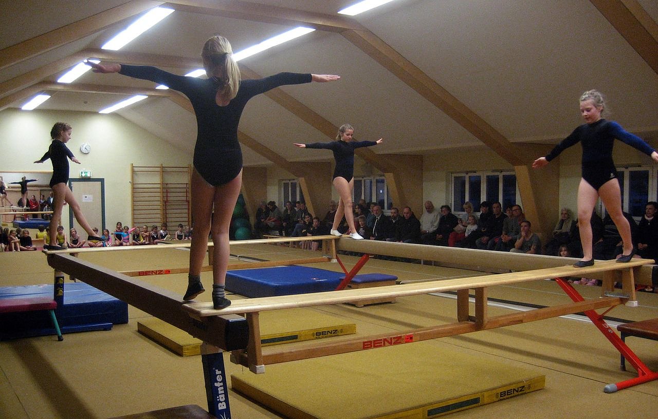 Anschließend erfolgten in der oberen Turnhalle die Darbietungen am Balken und auf den Bodenteppich. Hier konnten auch Übungen gezeigt werden außerhalb des Wettkampfprotokolls. So hatten die Übungsleiter sich ein Balken-Bank-Quadrat überlegt, um somit eine vielfältige Aufführungsmöglichkeit zu haben. Besonders viel Freude bereitete es den Turnerinnen ihre Elemente auf den Bodenteppich zur Musik darzubieten. Danach mussten alle ihre Sportlichkeit unter Beweis stellen, es ging wieder in die untere Turnhalle.