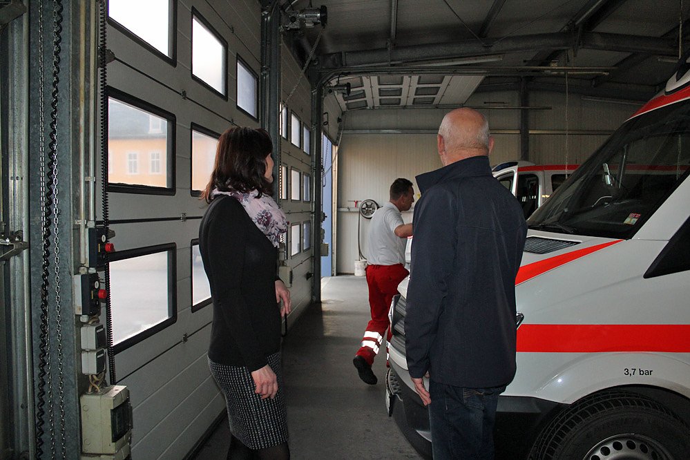 Im weiteren Gespräch mit Ronny Gepel und Julia Bachmann erfuhren die Landrätin und Verwaltungsleiter des Landratsamtes, Dr. Heinz Ulrich Thiele (er begleitete auf der ganzen Tour die Landrätin), dass sich bei der Rettungswache über die Feiertage gar nicht so viel ändert. Es wird wegen der Feiertage keine Reduzierung der Kräfte geben. Denn man mus ständig in Bereitschaft sein, im Gegenteil an Tagen wie Silvester und Neujahr gibt es in der Regel viel zu tun.