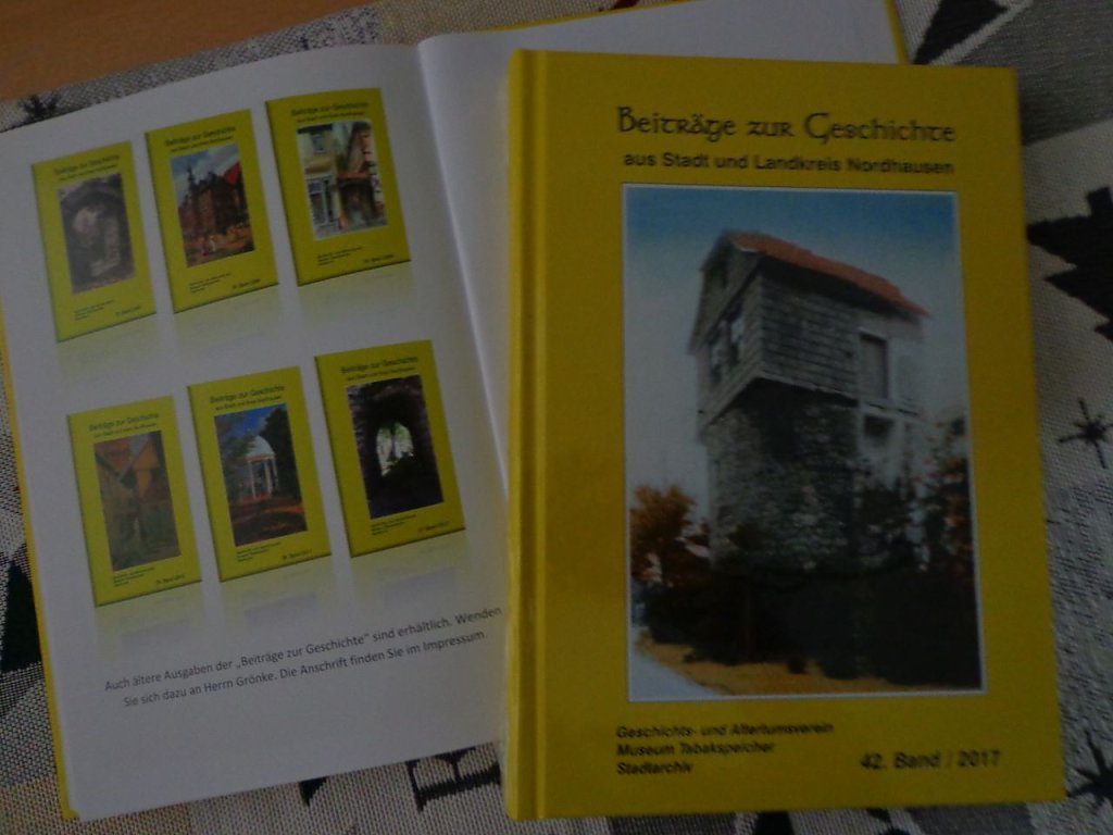 Der insgesamt 208 Seiten umfassende Band ist in gewohnt bester Qualität wieder im Verlag Steffen Iffland Nordhausen erschienen. Herausgeben wurde er vom Geschichts- und Altertumsverein, dem Museum Tabakspeicher und dem Stadtarchiv Nordhausen. Die redaktionelle Verantwortung lag in den Händen von Hans-Jürgen Grönke, Paul Lauerwald und Dr. Wolfram Theilemann. Die Publikation ist ab sofort in den Buchhäusern Rose und Hartmann, im Tabakspeicher sowie in Kürze auch in der Bahnhofsbuchhandlung zum Preis von 15 Euro erhältlich. Ebenso bei den monatlichen Vereinsabenden der Geschichtsfreunde.