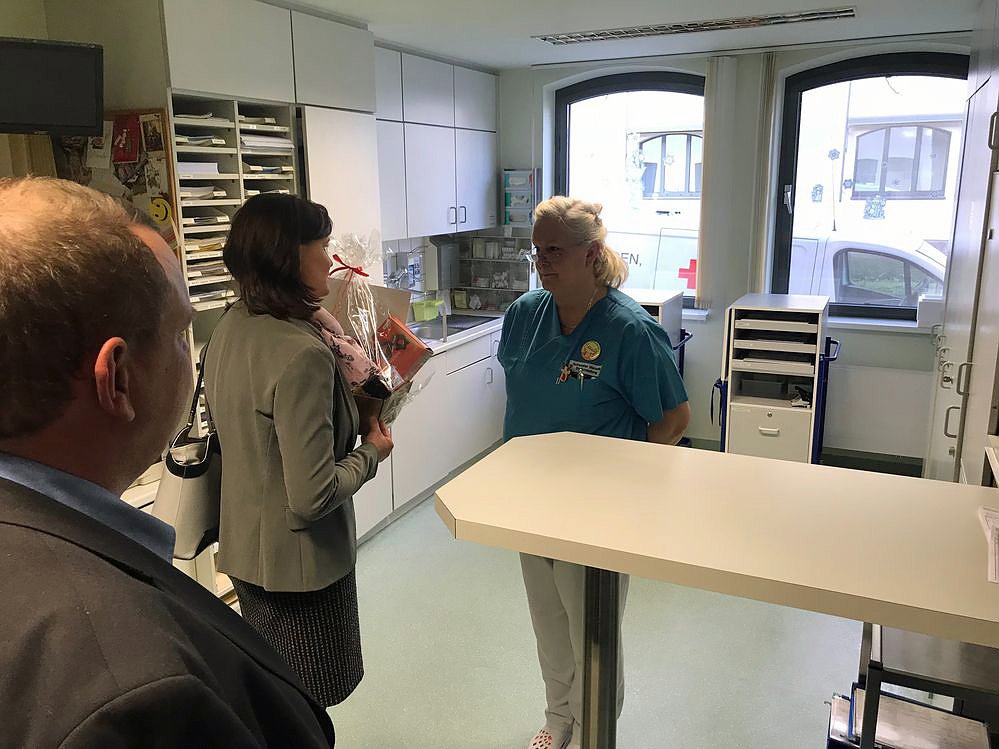 Thema der Gespräche war auch die schwierige Situation bei der Bereitstellung von ärztlichen Personal. Während es bei Ärzten aus dem EU-Ausland wenig Probleme bei einer Tätigkeit im Krankenhaus gibt, ist das bei Nicht-EU-Ausländern sehr schwierig Einstellungen vornehmen zu können, Im Gegensatz zu anderen Bundesländern sind die Hürden in Thüringen besonders hoch, wie die Landrätin erfuhr.