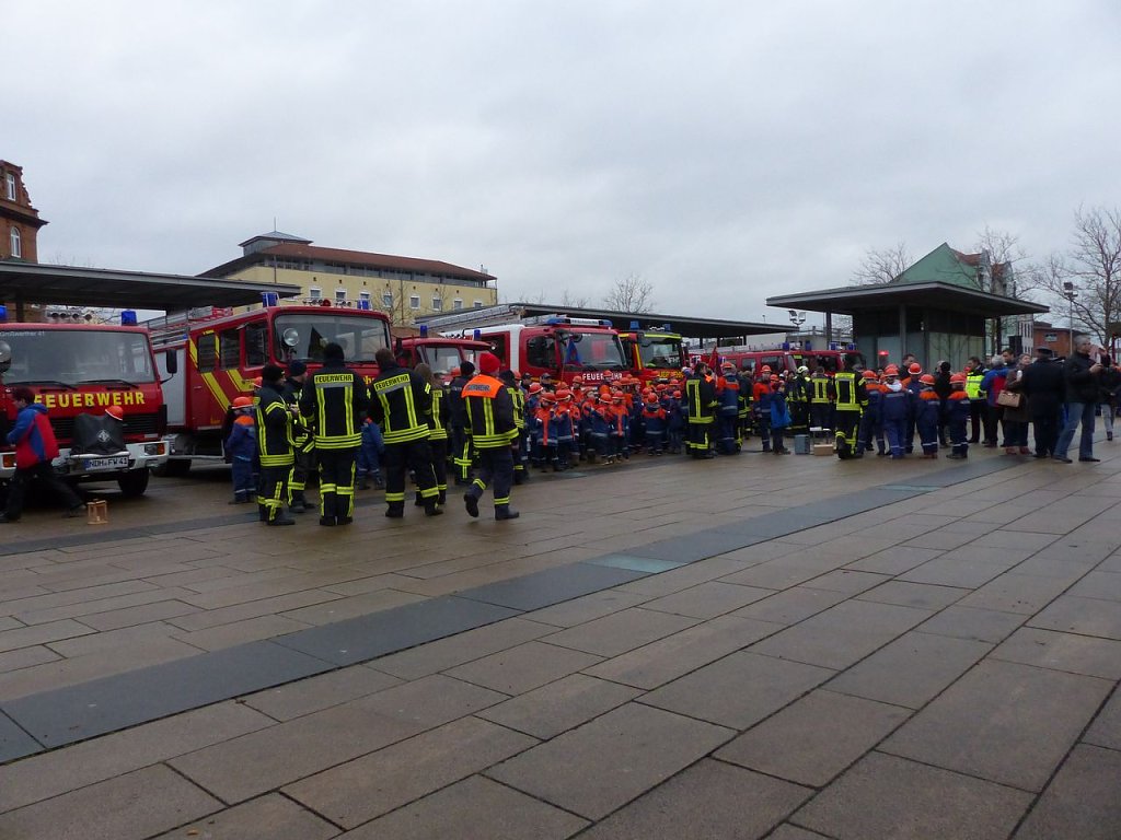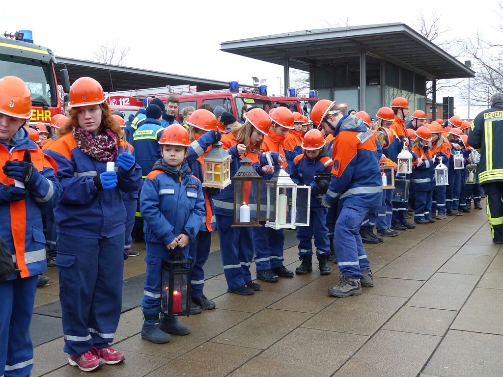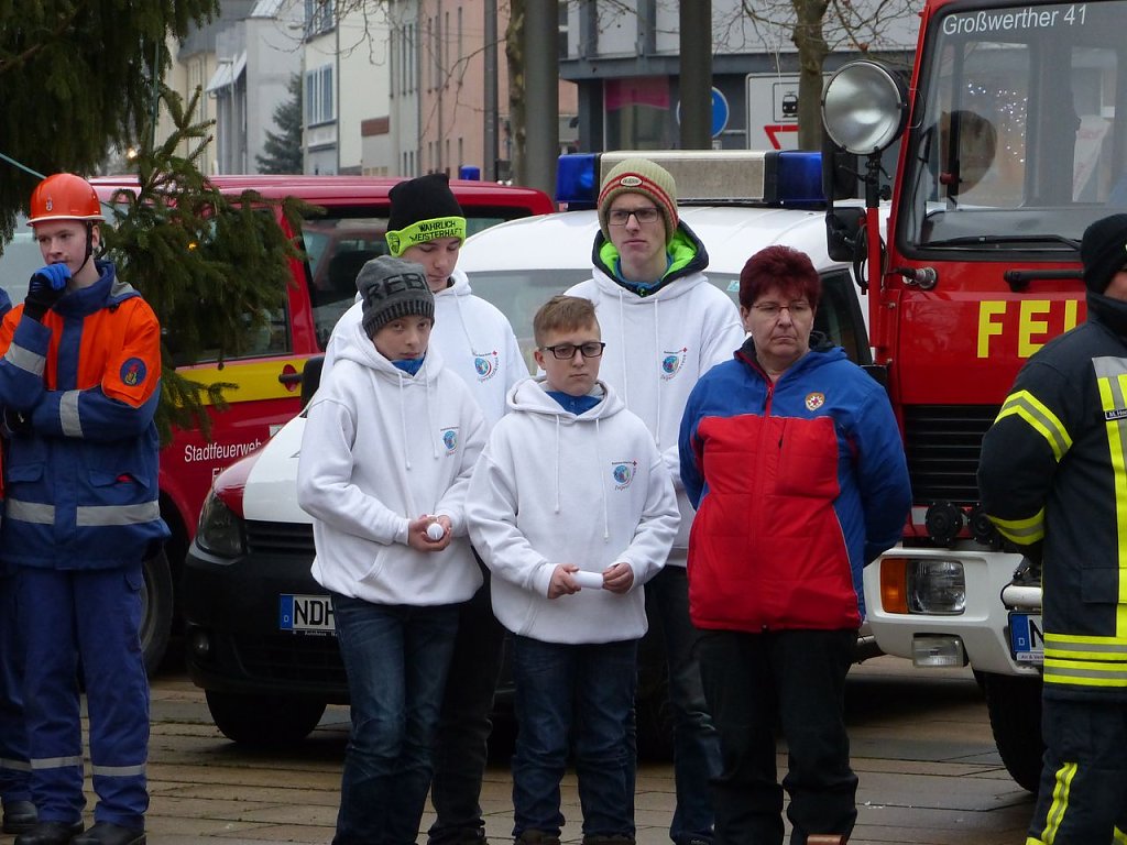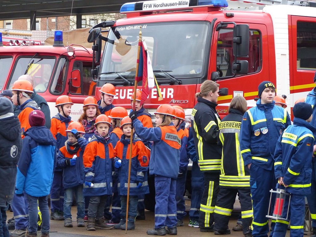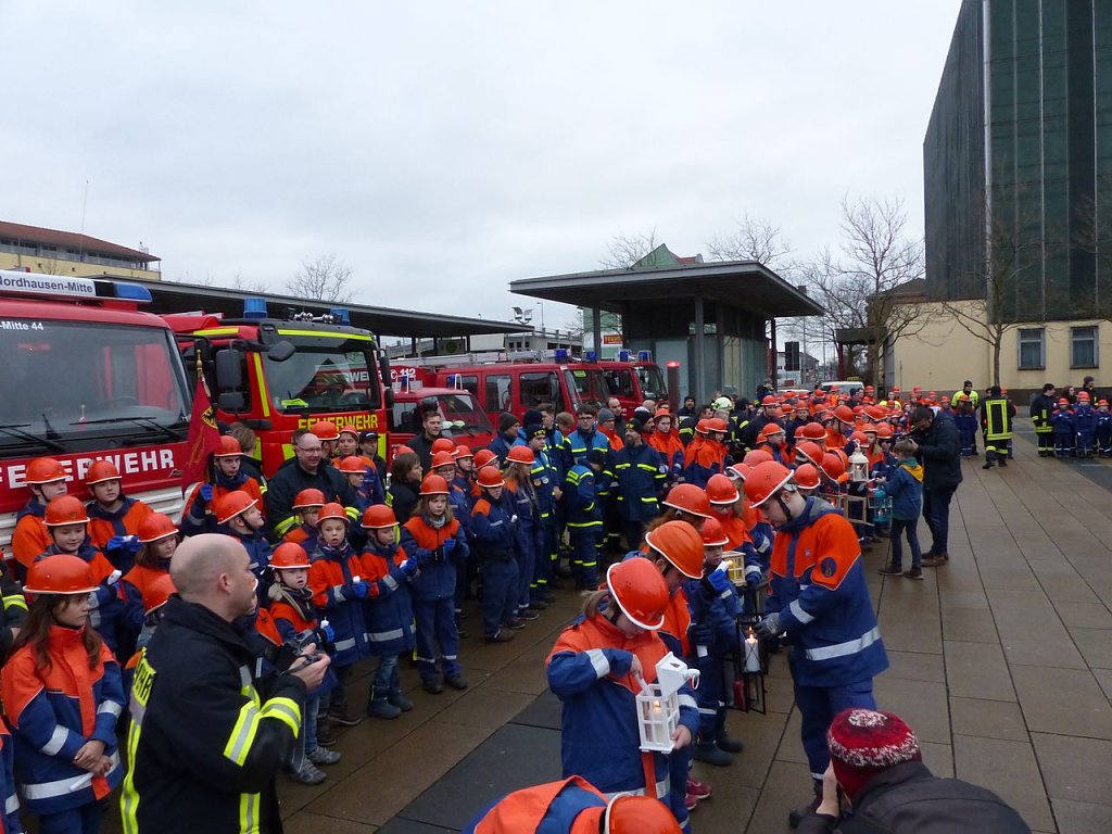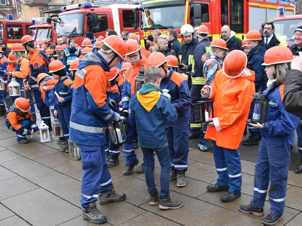 Über 200 Kinder und Jugendliche aus 24 Jugendwehren des Landkreises Nordhausen, dem THW, der Bergwacht und Pfadfindern waren angetreten, um das Licht weiter zu verteilen, um es in die vielen Gemeinden zu bringen. Die Jugendfeuerwehrwartin des Landkreises Nordhausen, Manja Bernsdorf, begrüßte denn zu Beginn auch alle, die gekommen waren und las dann erst einmal die lange Liste der besonderen Gäste vor. Es sind die gleichen wie im vergangenen Jahr - bis auf eine Ausnahme: Zum ersten Mal bekam Kai Buchmann in seiner Funktion als Oberbürgermeister ein Licht überreicht.