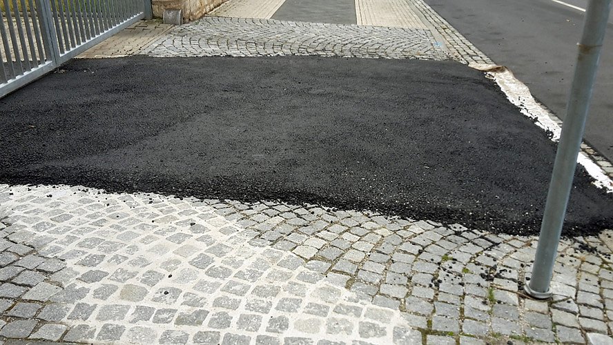 Der Aspalt wurde auf eine Plane aufgebracht und nach Beendigung der Baustelle wieder entfernt, wie Hauptamtsleiter Stefan Schard im Gespräch nach Anfrage erläuterte.
