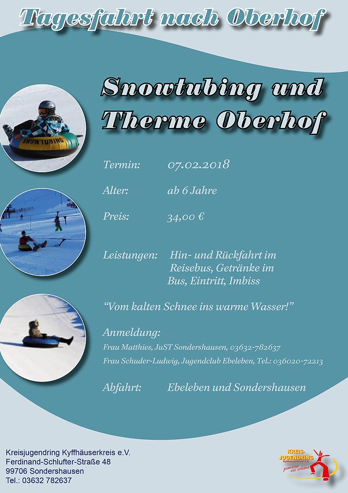 Tagesfahrt nach Oberhof Snowtubing und Therme