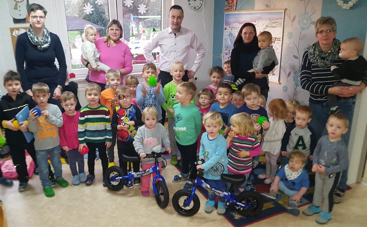 Der Sportverein SSV Blau-Weiss-Wollersleben, vertreten durch Abteilungsleiter Rene Fullmann, hatte die große Ehre, den Kindern die Überraschung zu überreichen.