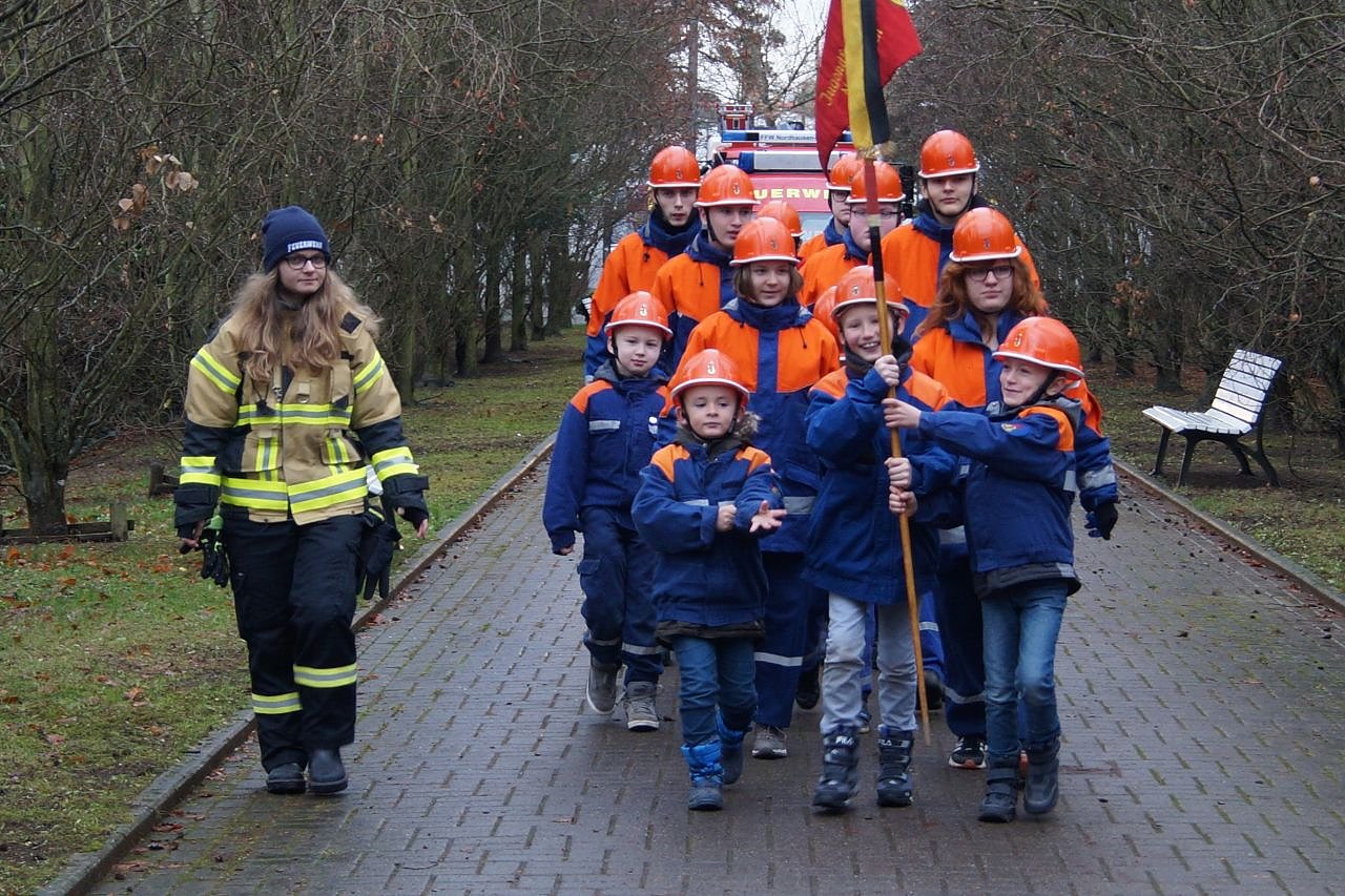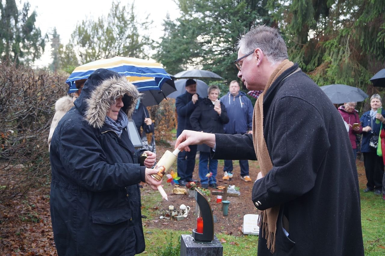 Um so ergreifend und bewegender ist es, wenn am 4. Adventswochenende das Friedenslicht seinen Weg zum Schmetterlingsfeld auf den Hauptfriedhof findet. Vor allem mit welchem Stolz und Engagement die Kinder und Jugendlichen der Kinder- und Jugendfeuerwehr Nordhausen Mitte das Licht überbringen. Wenn die Kinder und Jugendliche zu Weihnachten mit diesem kleinen Licht das schreckliche Dunkel der Trauer ein wenig erhellen, dann ist für mich Weihnachten. Mit diesem Satz entzündete Herr Titulaer das Friedenslicht am Schmetterlingsfeld und verteilte es an alle gekommenen, trauernden Menschen.