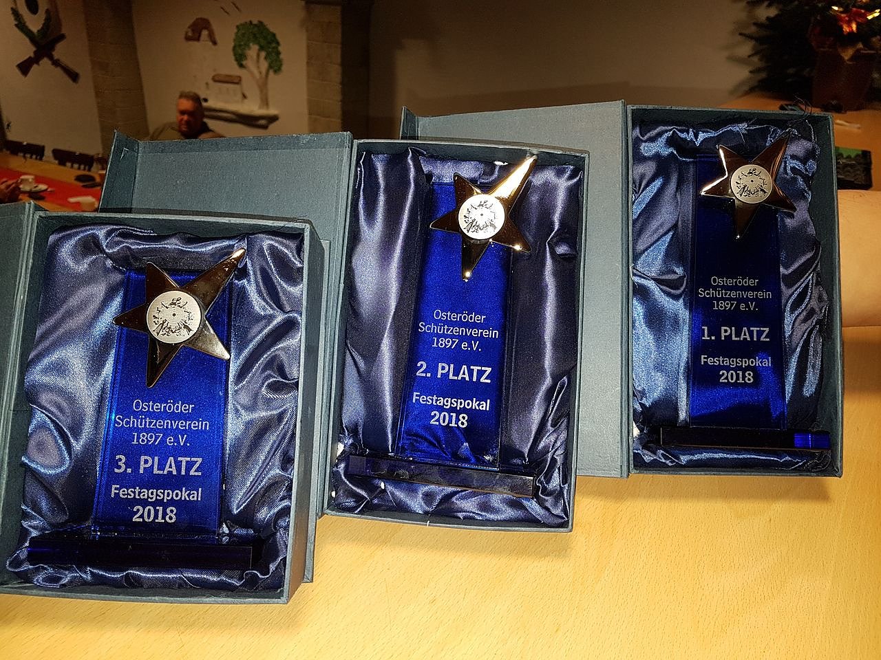 Alle drei erreichten 46 Ringe, wobei der Erstplatzierte drei Zehnen und die beiden Nachfolgenden zwei Zehnen geschossen haben. Als Siegerprämie gab es für die Schützen je einen wunderschönen Pokal.