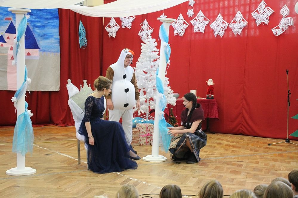 Höhepunkt des Festes ist immer ein Märchenspiel, dass von den Schülerinnen und Schülern aufgeführt wird. Dieses Jahr dreht sich die Geschichte um die Tradition des Weihnachtsfestes und Schneemann Olaf machte sich dazu auf eine große Reise durch die Märchenwelt.