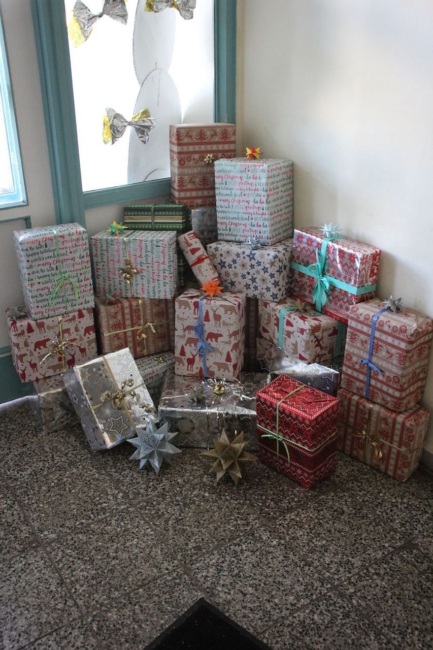 Die Mitglieder der Klasse Erzieher 19 (erstes Lehrjahr), die vor und hinter der Bühne für die Auführung sorgten, machten den Kindern viel Freude. Und weil nicht allen Kinder gleichzeitig die Weihnachtsstück anschauen konnten, gab es noch einen großen Weihnachtsmarkt im Freien.