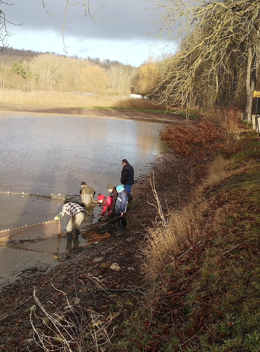 Dennoch konnten die fleißigen Helfer insgesamt 90 Karpfen, 4 Zander, 3 Schleien und 300kg Giebel bergen und in andere Vereinsgewässer umsetzen.
