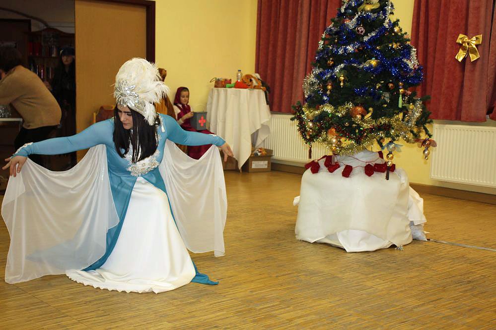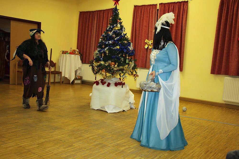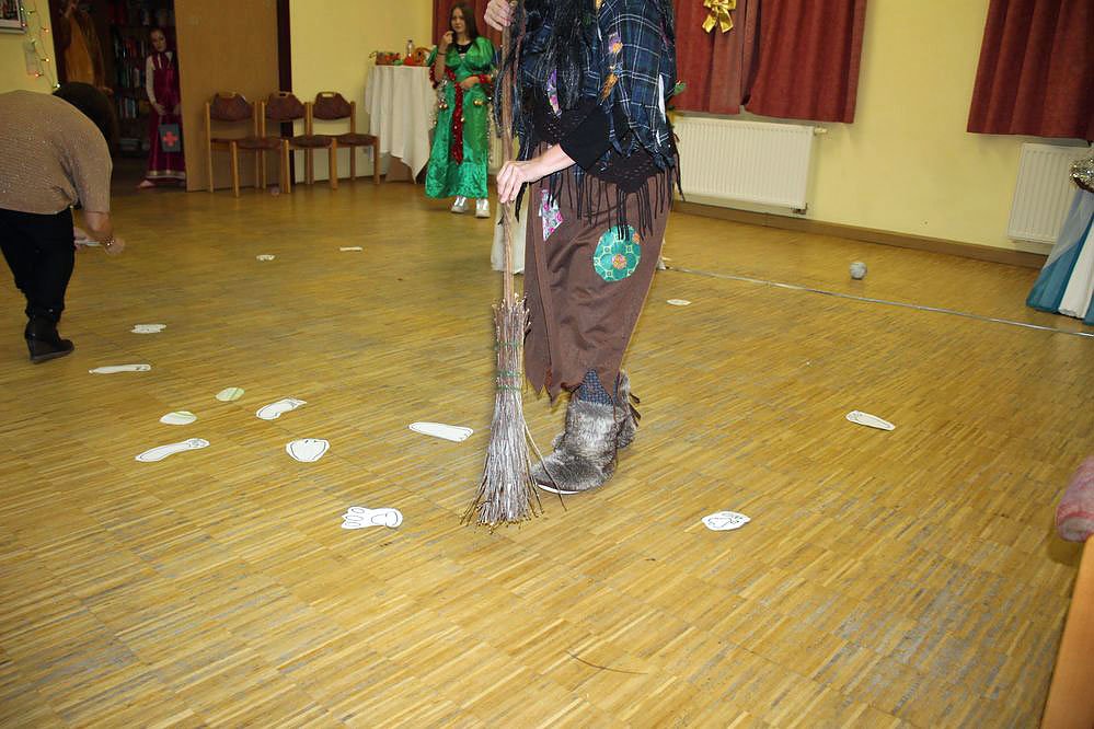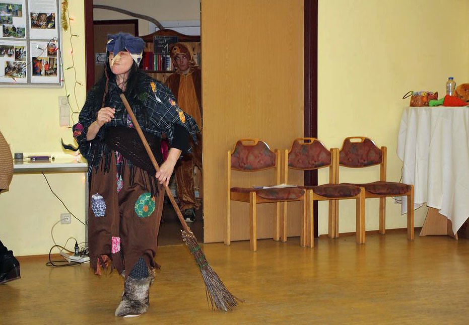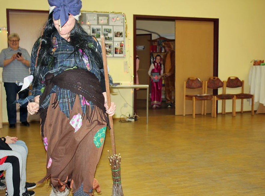 Zu einem Jolkafest gehörte ganz einfach auch ein Märchenspiel. Dabei eine böse Hexe, die Spuren im Wald vernichtet hat, wie kn bemerkte.