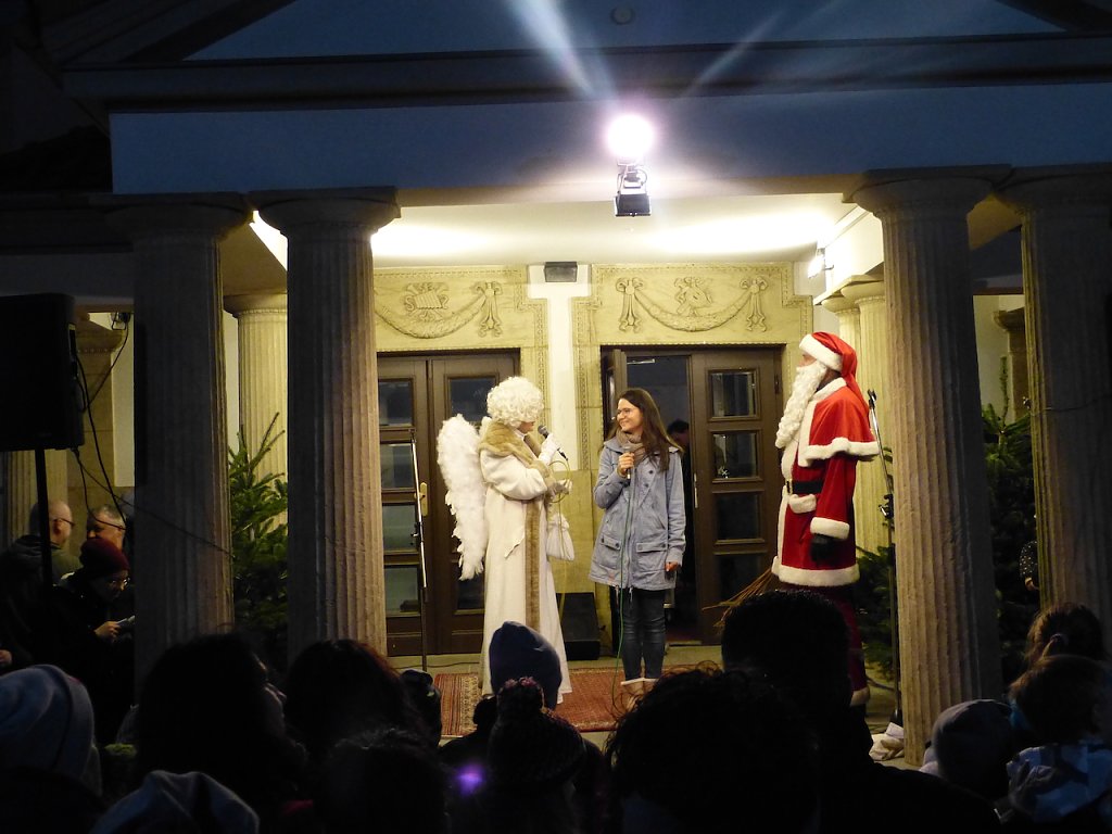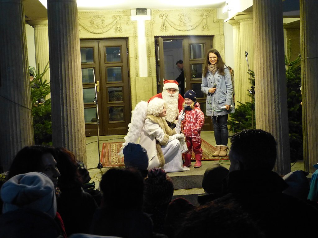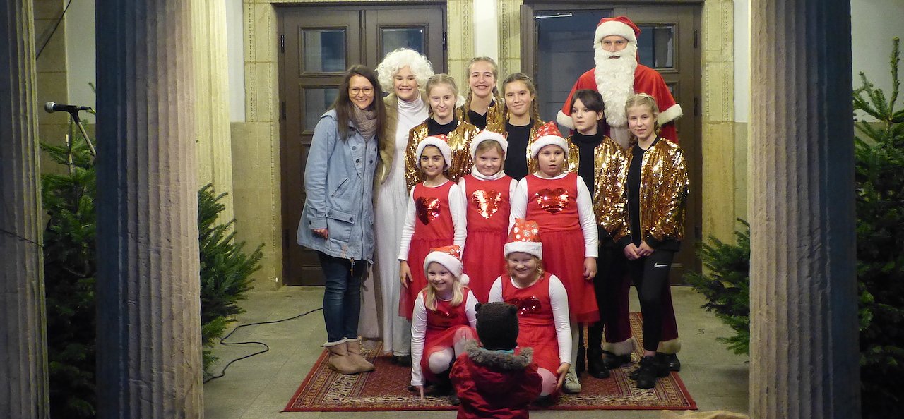 Eine der Tänzerinnen ist bereits seit 10 Jahren im Tanzprojekt aktiv und beeindruckte Engelchen und Weihnachtsmann sehr. Der Weihnachtsmann gestand, dass er sich eher auf Kekse als auf Bewegung freut. Die Projektleiterin Katrin Schille stellte das Tanzprojekt und die verschiedenen Gruppen genauer vor.