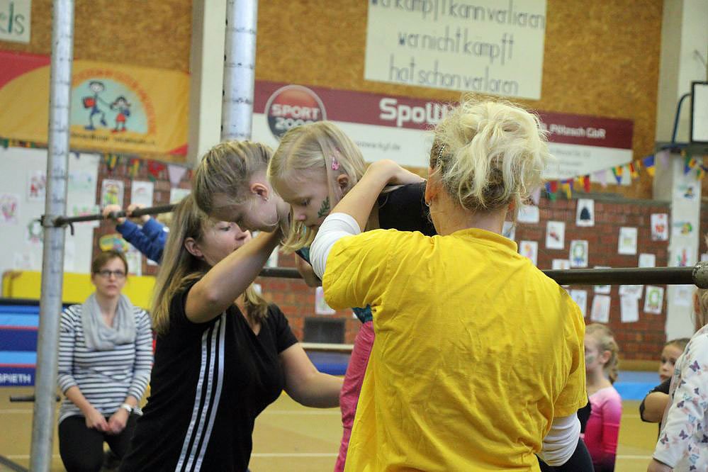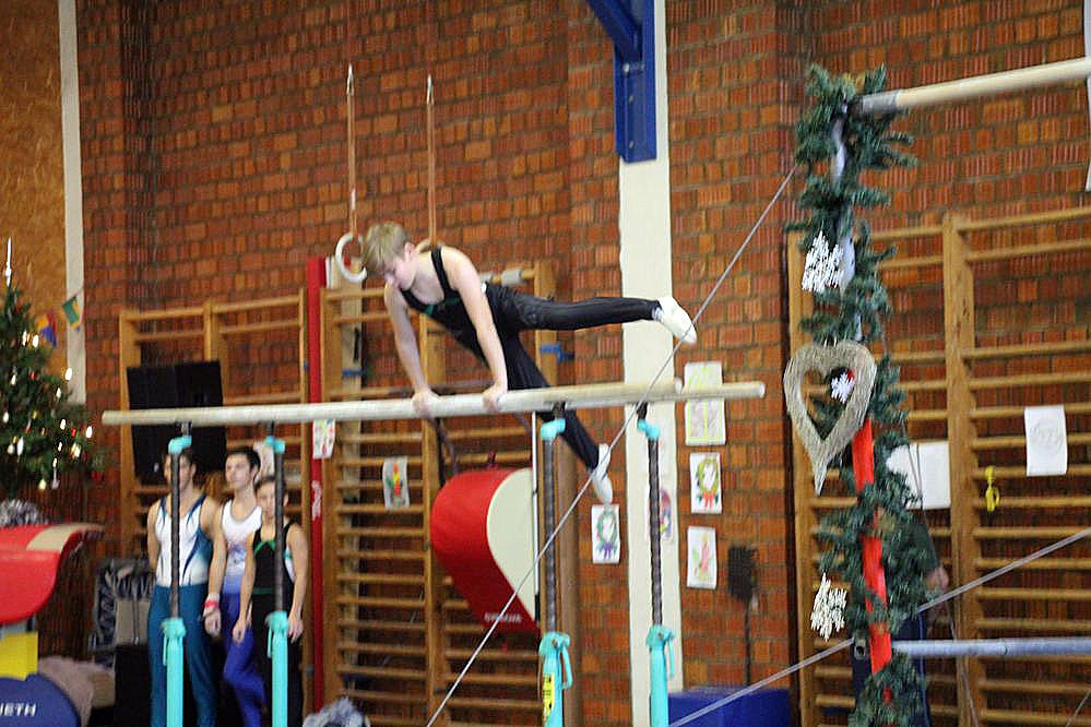 Am Stufenbarren zeigte Lara-Nele Angelstein, warum man in Kassel auf sie aufmerksam wurde und sie für die Turnmeisterschaften in die Mannschaft nach Kassel geholt und turnt jetzt sogar in der 3. Bundesliga. Beim Deutschlandcup erkämpfte sich Lara-Nele sogar einen vierten Platz.