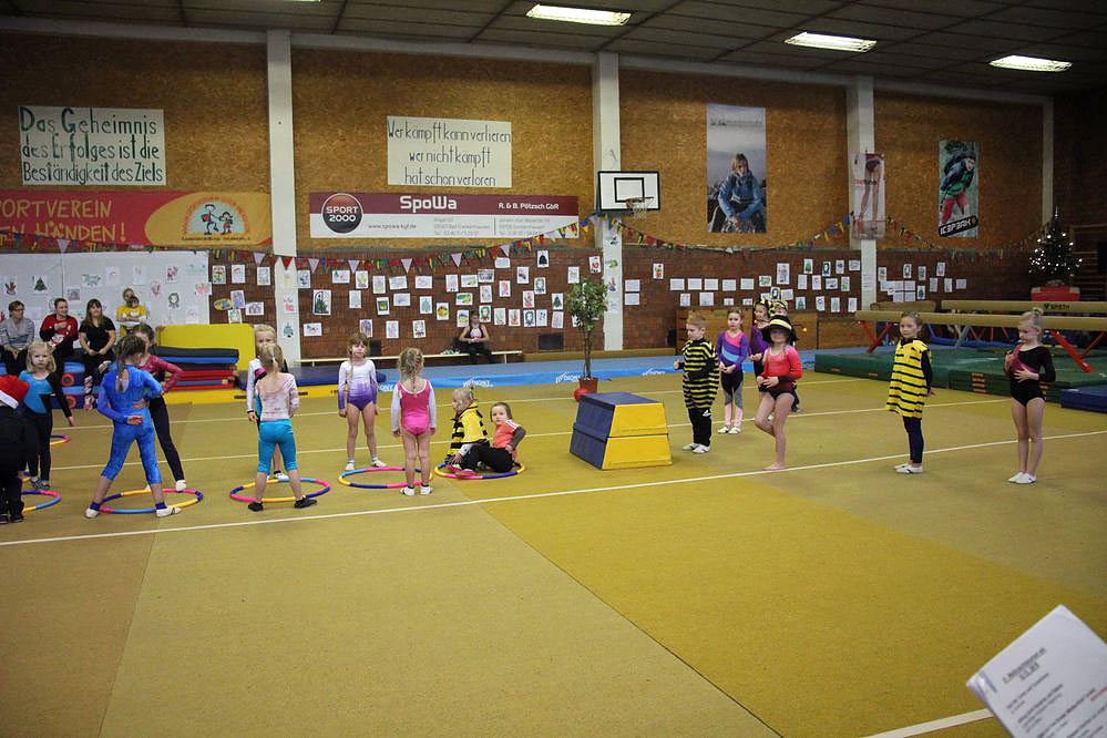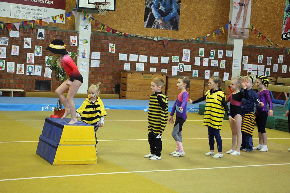 Mit dem Maskotchen der Turner des SV der Biene, ging es weiter. Genauer gesagt mit den Turnbienen.