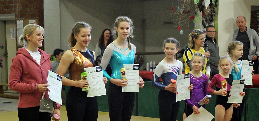 Hier für fünf und 10 jährige Mitgliedschaft beim Turnen des SV Glückauf. Jessica Köhler, ganz links im Bild, schon für 25 Jahre Mitgliedschaft.