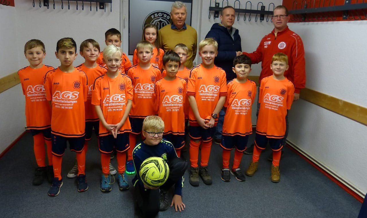Auch wenn die großen sportlichen Erfolge bisher ausblieben, hilft vielleicht ein neuer Trikotsatz, etwas abweichend von den üblichen Vereinsfarben der FSG das Team weiter voran zu bringen. Trainer Marco Dietrich bedankte sich beim Sponsor Michael Machlitt von der Firma AGS Dienstleistungen.