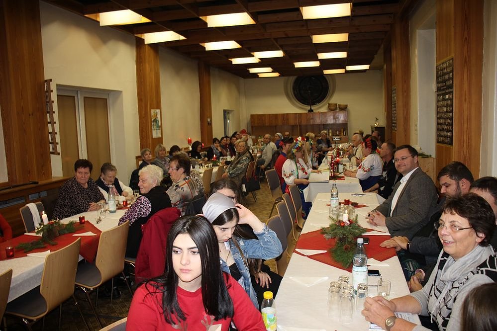 Katharina Weizel von der Gruppe Kontakt (Spätaussiedler aus dem Gebiet der ehemaligen Sowjetunion) hatte die Begrüßung übernommen. Seit August hat die Gruppe Kontakt ihr Domizil wieder in den Räumen der Trinitatsgemeinde gefunden und der Dank ging an Pfarrer Karl Weber. Vertreter der Kirchgemeinde nahmen genauso an der Feier wie z.B. Mitglieder vom WB4 der Volkssolidarität. In neuer Funktion nahm Stefan Schard (CDU) als Landtagsmitglied teil. Schard und Weber wünschten allen ein frohes und friedvolles Weihnachtsfest.