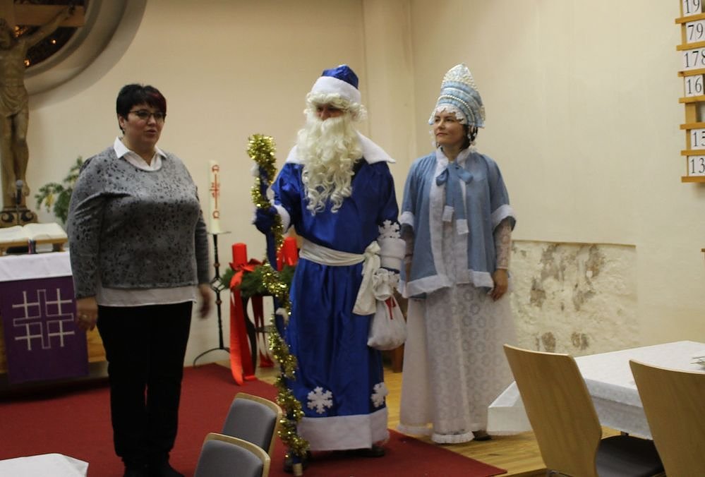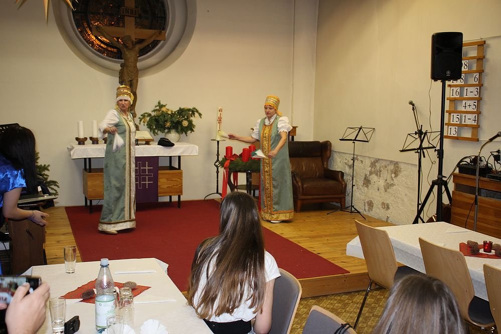 Nach der Bescherung mit Väterchen Frost und dem Versprechen, dass sich die Gruppe Kontakt und der Chor Lebensquelle gegenseitig besuchen werden, gab es erst ein Glühwein und ein gemeinsames Abendbrot.