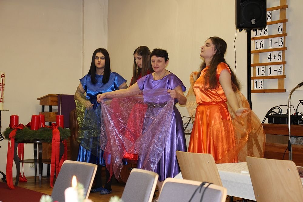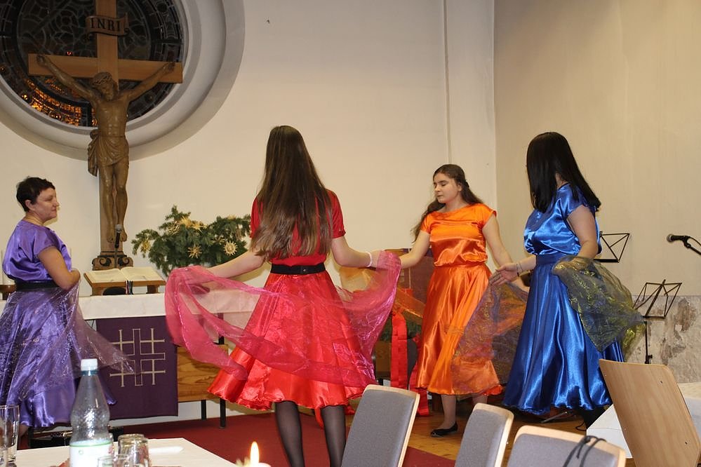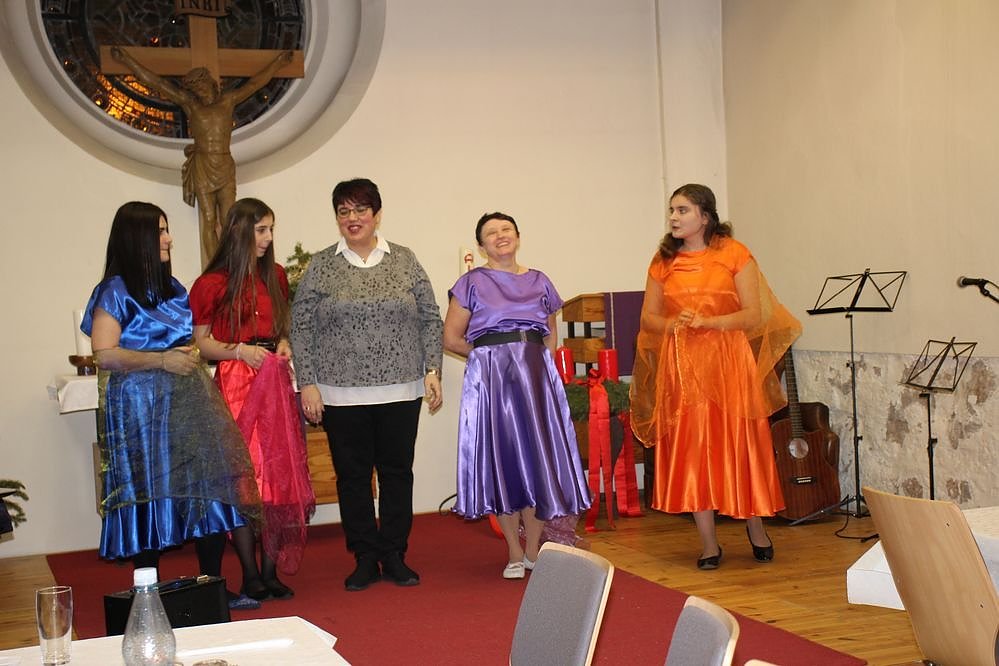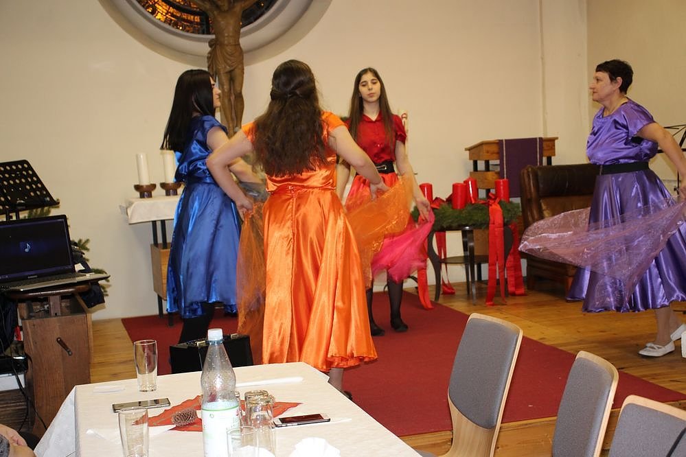 Eine Weihnachtsfeier bei Kontakt ohne Gesang und Tanz? Eigentlich nicht vorstellbar. Und man hatte diese Jahr liebevolle Freunde aus der Region Mühlhausen die mit flotten Lieder viel Beifall einfuhren.